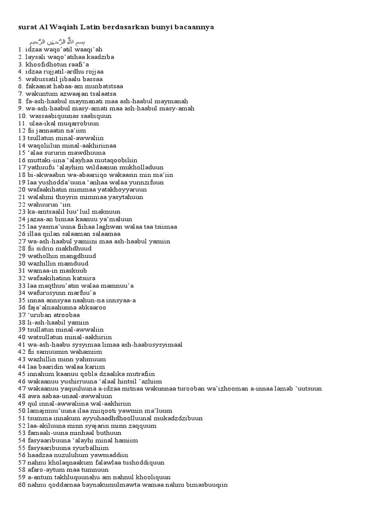 Surat Al Waqiah Dalam Huruf Latin Kumpulan Surat Penting