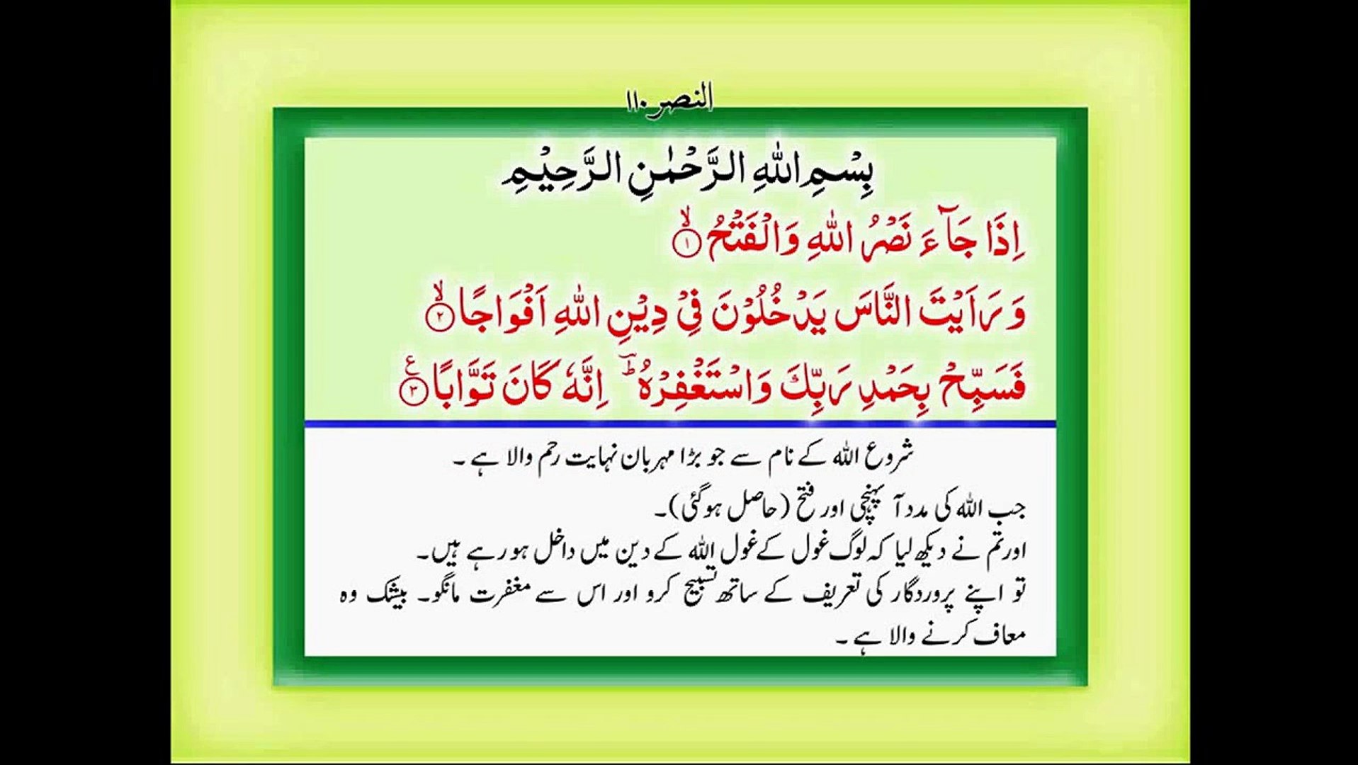 | Judul Surah: Quran With Urdu Translation Surah 110 An Nasr Video Dailymotion |